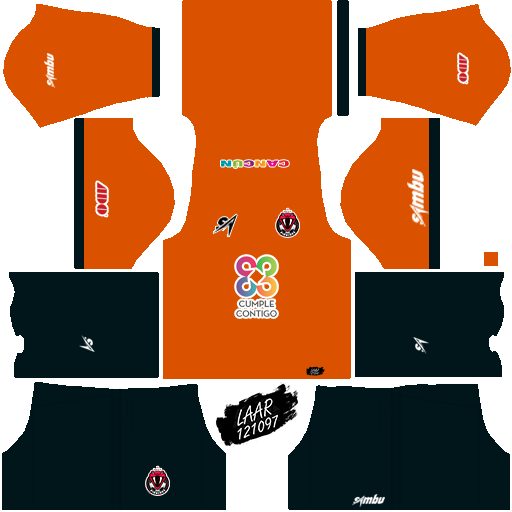 Kits hechos por un servidor, basados en los diseños originales Sambu del Club Pioneros de Cancún para el juego de Dream League Soccer (Falta el patrocinador del shorts)